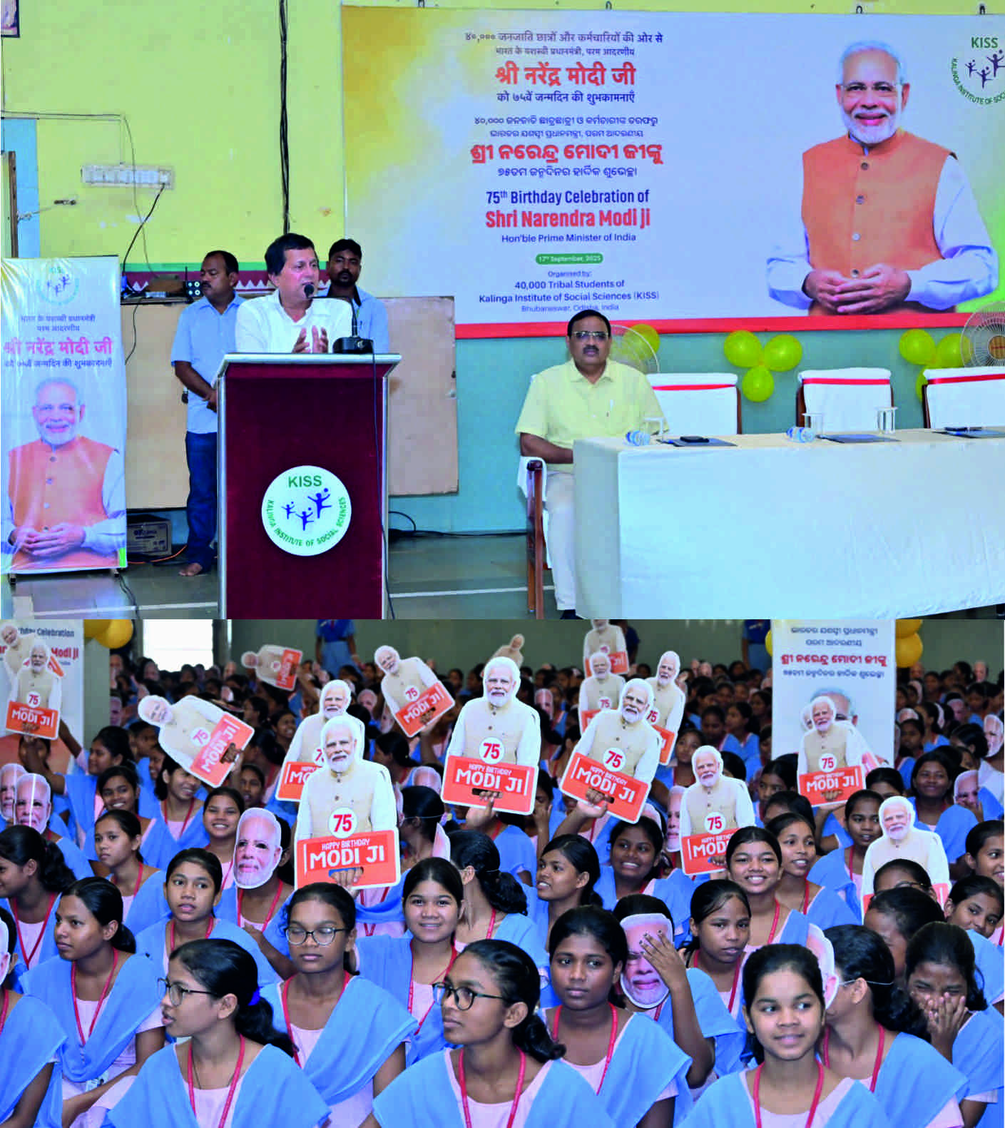 ଭୁବନେଶ୍ୱର, ୧୭/୦୯(ପାଇକପୁଅ) ବିଶ୍ୱର ସର୍ବବୃହତ ଜନଜାତି ବିଦ୍ୟାଳୟ କିସ୍ ପରିସରରେ ଭାରତର ଯଶସ୍ୱୀ ପ୍ରଧାନମନ୍ତ୍ରୀ ନରେନ୍ଦ୍ର ମୋଦୀଙ୍କ ୭୫ ତମ ଜନ୍ମଦିନ ମହାସମାରୋହରେ ପାଳିତ ହୋଇଯାଇଛି। ଏଥିରେ କିସ୍ର ୪୦ ହଜାର ଛାତ୍ରଛାତ୍ରୀ ଏକାଠି ପ୍ରଧାନମନ୍ତ୍ରୀଙ୍କ ଜନ୍ମଦିନ ପାଳନ କରିଥିଲେ। ପିଲାମାନେ ମୋଦୀଙ୍କ ମୁଖା ପିନ୍ଧି ଜନ୍ମଦିନ ସଙ୍ଗୀତର ତାଳେତାଳେ ପ୍ରଧାନମନ୍ତ୍ରୀ ମୋଦୀଙ୍କ ଜନ୍ମଦିନ ପାଳନ କରିଥିଲେ। ଏହି ଅବସରରେ କିଟ୍ ଓ କିସ୍ ପ୍ରତିଷ୍ଠାତା ଅଚ୍ୟୁତ ସାମନ୍ତ କିଟ୍ ଓ କିସ୍ ତଥା କିମ୍ସ ଛାତ୍ରଛାତ୍ରୀଙ୍କ ପକ୍ଷରୁ ଶ୍ରୀ ମୋଦୀଙ୍କୁ ତାଙ୍କ ଜନ୍ମଦିନର ଶୁଭେଚ୍ଛା ଜଣାଇଥିଲେ। ଏହା ସହ ଶ୍ରୀ ସାମନ୍ତ ପ୍ରଧାନମନ୍ତ୍ରୀ ନରେନ୍ଦ୍ର ମୋଦୀଙ୍କ ଦୀର୍ଘ, ସୁସ୍ଥ ଓ ନିରାମୟ ଜୀବନ କାମନା କରିଥିଲେ। ମୋଦୀଙ୍କ ଜନ୍ମଦିନ ପାଇଁ କିସ୍ରେ ବିଶେଷ ସାଜସଜା କରାଯାଇଥିଲା। ଏହି କାର୍ଯ୍ୟକ୍ରମରେ କିଟ୍ ଓ କିସ୍ର ବହୁ ପଦାଧିକାରୀ ମଧ୍ୟ ଉପସ୍ଥିତ ଥିଲେ।