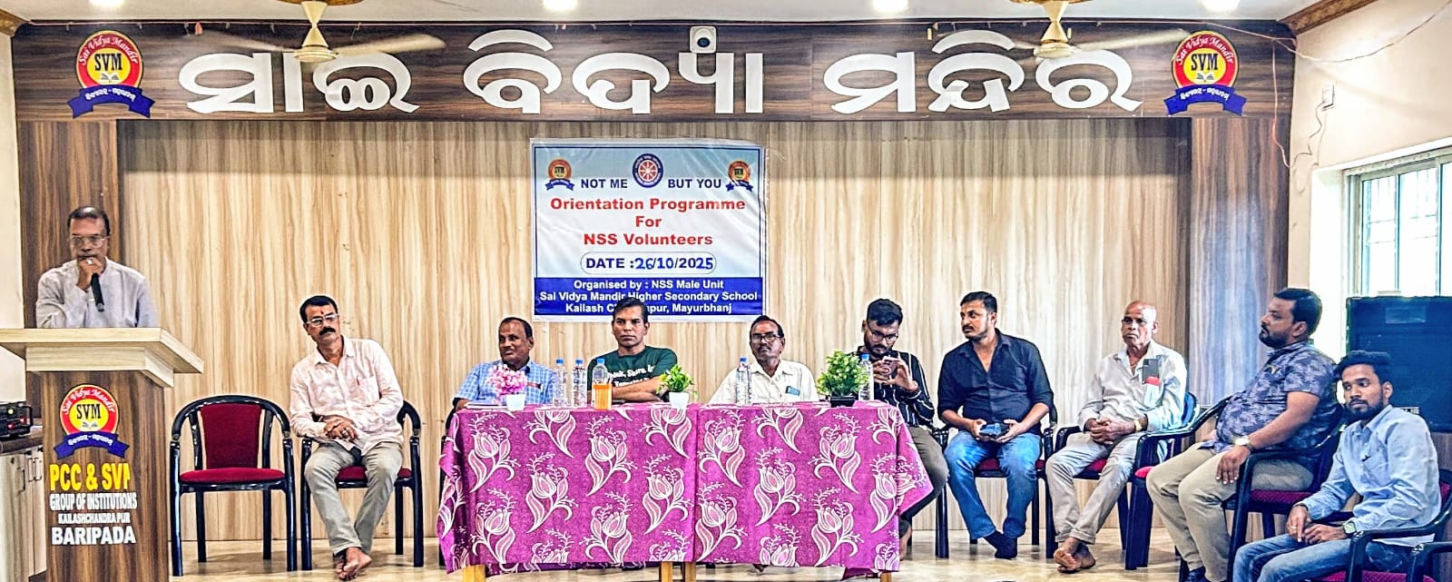 ବାରିପଦା, ୨୮/୧୦(ପାଇକପୁଅ)ବାରିପଦା ସ୍ଥିତ ସାଇ ବିଦ୍ୟା ମନ୍ଦିର ଜାତୀୟ ସେବା ଯୋଜନା ଶାଖା ଆନୁକୁଲ୍ୟରେ ନୂତନ କରି ଯୋଗ ଦେଇଥିବା ସ୍ୱେଚ୍ଛା ସେବୀ ମାନଙ୍କ ଆଭିମୁଖୀ କରଣ କାର୍ଯ୍ୟକ୍ରମ ଅନୁଷ୍ଠିତ ହୋଇ ଯାଇଛି। ଅଧ୍ୟକ୍ଷ ଅକ୍ଷୟ କୁମାର ଖିଲାରଙ୍କ ସଭାପତିତ୍ୱରେ ଆୟୋଜିତ କାର୍ଯ୍ୟକ୍ରମରେ ଅନୁଷ୍ଠାନର ନିର୍ମାତା ତଥା ନିର୍ଦ୍ଦେଶକ ଡ. ପ୍ରଭଞ୍ଜନ ରାଉତ, ମହାପ୍ରବନ୍ଧକ ଦେବାଶିଷ ମୁଦୁଲି ପ୍ରମୁଖ ଯୋଗଦେଇ ଜାତୀୟ ସେବା ଯୋଜନାର ଲକ୍ଷ୍ୟ ଓ ଉଦ୍ଦେଶ୍ୟ ପ୍ରସଙ୍ଗରେ ବିସ୍ତୃତ ଆଲୋଚନା କରିଥିଲେ।ଉଚ୍ଚ ମାଧ୍ୟମିକ ବିଦ୍ୟାଳୟର ଜାତୀୟ ସେବା ଯୋଜନାର ପ୍ରୋଗ୍ରାମ ଅଫିସର ଅଧ୍ୟାପକ ରଶ୍ମୀରଞ୍ଜନ ରାଉତଙ୍କ ଦ୍ୱାରା ପରିଚାଳିତ କାର୍ଯ୍ୟକ୍ରମରେ ମୁଖ୍ୟ ଅତିଥି ଭାବେ ଉଚ୍ଚ ମାଧ୍ୟମିକ ଶିକ୍ଷା ପରିଷଦ ଉତ୍ତର ଓଡିଶାର ଡେପୁଟି ସେକ୍ରେଟାରୀ ରାଜେଶ କୁମାର ପ୍ରଧାନ, ସମ୍ମାନିତ ଅତିଥି ଭାବେ କୈଳାସ ଚନ୍ଦ୍ରପୁର ପୂର୍ବତନ ସରପଞ୍ଚ ରବିନ୍ଦ୍ର ନାଥ ଦେହୁରି, କ୍ରାକ୍ତନ ଅଧ୍ୟାପକ ସ୍ୱରୂପ ଶତପଥୀ ,ସମ୍ପାଦକ ଚନ୍ଦ୍ରକାନ୍ତ ରାଉତ ସିଇଓ ପ୍ରତିଚୀ ରଞ୍ଜନ ରାଉତ, ଚକ୍ରଧର ରାଉତ, ଉପେନ୍ଦ୍ର ରାଉଳ, ସୁବ୍ରତ ସେନ, ଶିବାନନ୍ଦ ଦାସ ପ୍ରମୁଖ ଯୋଗଦେଇ ନିଃସ୍ୱାର୍ଥ ସେବା ଦ୍ୱାରା ଜନ ମଙ୍ଗଳ କାର୍ଯ୍ୟରେ ସାମିଲ ହେବାକୁ ସ୍ୱେଚ୍ଛାସେବୀ ମାନଙ୍କୁ ଆହ୍ୱାନ ଦେଇଥିଲେ।