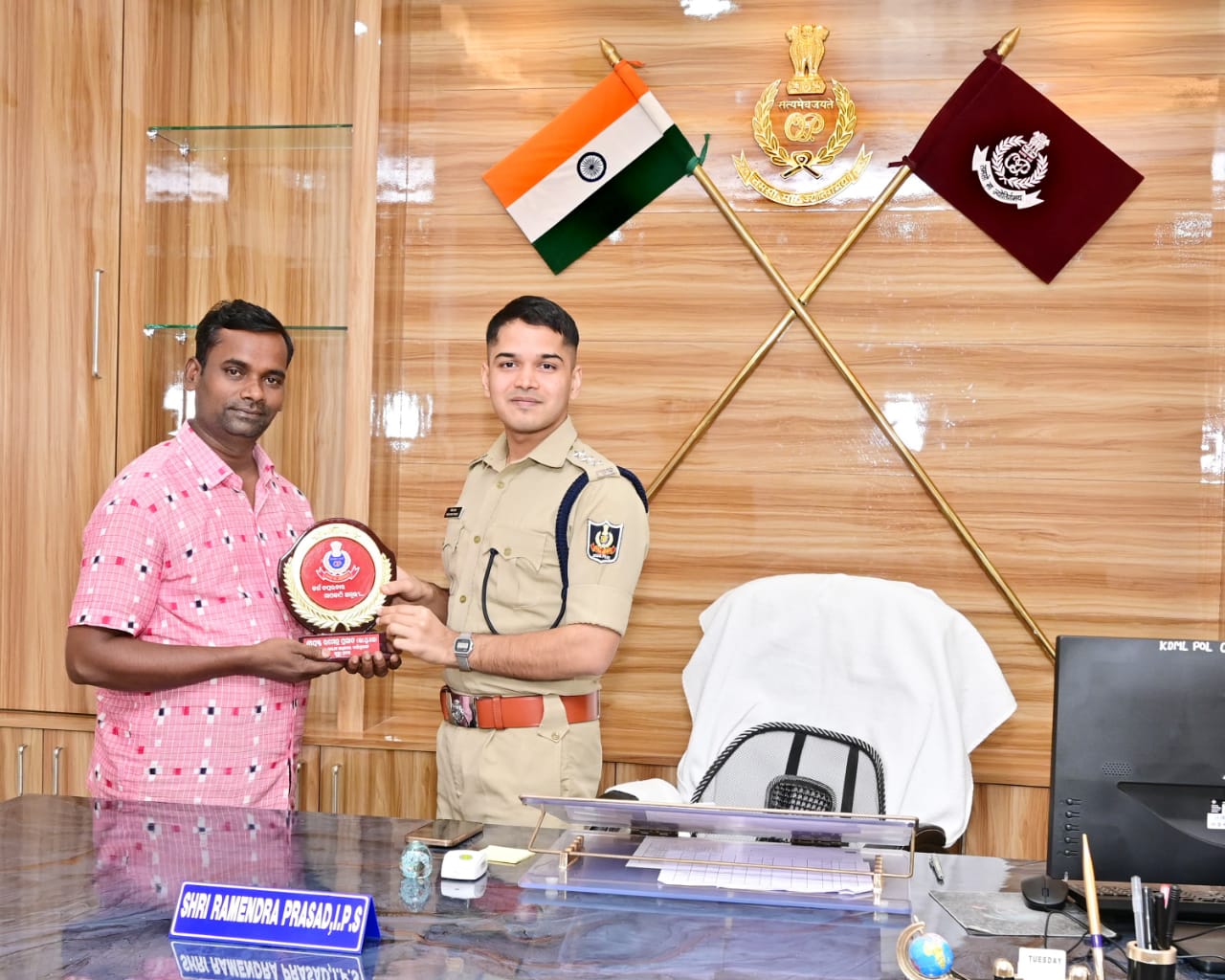 ବାଲିଗୁଡା,୧୭/୧୧:(ସଞ୍ଜୟ କୁମାର ପାଣିଗ୍ରାହୀ): କନ୍ଧମାଳ ଜିଲ୍ଲା ବାଲିଗୁଡା ଅଞ୍ଚଳର ଫଟୋ ଗ୍ରାଫର ବୁଲୁ (ଷ୍ଟୁଡିଓ ବୁଲୁ) ସାଇବର ଠକେଇ ରୁ କିପରି ରକ୍ଷା ପାଇବା ଅଭିଯାନ ର ସମସ୍ତ ଫଟୋ ଓ ଭିଡିଓ କାର୍ଯ୍ୟକୁ ସଠିକ୍ ଭାବରେ ଉତ୍ତୋଳନ କରିଥିବାରୁ ଏବଂ ଦୁଇ ଦୁଇଥର ରାଜ୍ୟ ସ୍ତରରେ କନ୍ଧମାଳ ଜିଲ୍ଲାରୁ ମାତ୍ର ଜଣେ ସମ୍ମାନିତ ହୋଇ ସମଗ୍ର ଜିଲ୍ଲା ପାଇଁ ଗୌରବ ଆଣିଥିବାରୁ ବାଲିଗୁଡା ଉପଖଣ୍ଡ ଆରକ୍ଷୀ ଅଧିକାରୀ ରମେନ୍ଦ୍ର ପ୍ରସାଦ ଫଟୋ ଗ୍ରାଫର ବୁଲୁଙ୍କୁ ଟ୍ରଫି (ପ୍ରଦତ୍ତ) ପ୍ରଦାନ କରିଛନ୍ତି। ତାଙ୍କର ଫୋଟୋ ଓ ଭିଡିଓ ଉତ୍ତୋଳନ ପାଇଁ ସେ ବିଭିନ୍ନ ସ୍ଥାନରୁ ପ୍ରଶଂସା ପାଉଥିବା ବେଳେ ପୁଣି ଏସଡିପିଓ ଙ୍କ ଠାରୁ ଟ୍ରଫି ପାଇବା ପରେ ବିଭିନ୍ନ ମହଲ ରୁ ଶୁଭେଚ୍ଛା ର ସୁଅ ଛୁଟିବାରେ ଲାଗିଛି।