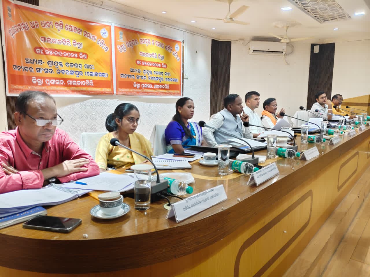 ବୈଠକରେ ପ୍ରଧାନମନ୍ତ୍ରୀ ଧନଧାନ୍ୟ କୃଷି ଯୋଜନା ଉପରେ ଗୁରୁତ୍ୱାରୋପ କରାଯାଇଛି। ଭୁବନେଶ୍ୱର ରୁ ଆସିଥିବା ଏକ ବୈଜ୍ଞାନିକ ଦଳଙ୍କ ଉପସ୍ଥିତି ରେ କିଭଳି କୃଷି କ୍ଷେତ୍ରରେ ଜିଲ୍ଲାର ଉନ୍ନତି କରାଯାଇପାରିବ, ସେଥି ନିମନ୍ତେ ବିଶଦ ଆଲୋଚନା କରାଯାଇଥିଲା। ବାଲିମେଳା ଡ୍ୟାମ୍ ଠାରେ ଅଧିକ ମାଛ ଉତ୍ପାଦନ କରିବାର କ୍ଷମତା ରହିଛି। ସେହିପରି ଜିଲ୍ଲାରେ ବାଦାମ ଚାଷ ଅଧିକ କରାଯାଉଛି । କ୍ଷୁଦ୍ର ତେଲ ମିଲ୍ ସ୍ଥାପନ ହେଲେ ଯୁବ ଉଦ୍ୟୋଗୀ ସୃଷ୍ଟି ହୋଇପାରିବେ ବୋଲି ସାଂସଦ କହିଥିଲେ। ପ୍ରଧାନମନ୍ତ୍ରୀ ଧନଧାନ୍ୟ ଯୋଜନାରେ କୃଷି ବିଶେଷଜ୍ଞ ଙ୍କ ସହାୟତା ନେଇ ଜିଲ୍ଲାର ସାମାଜିକ ଅର୍ଥନୈତିକ ଅଭିବୃଦ୍ଧି କରିବାକୁ ଲକ୍ଷ୍ୟ ରଖା ଯାଇଛି। ସୂଚନା ଯୋଗ୍ୟ ଏହି ଯୋଜନା ଓଡ଼ିଶା ର ଚାରିଟି ଜିଲ୍ଲାରେ ଶୁଭାରମ୍ଭ କରାଯାଇଛି । ତନ୍ମଧ୍ୟରେ ମାଲକାନଗିରି ଜିଲ୍ଲା ରହିଛି। ଚାଷୀଙ୍କ ସର୍ବାଙ୍ଗୀନ ବିକାଶ ନିମନ୍ତେ ଜିଲ୍ଲାର ୧୧୧ ଟି ଗ୍ରାମ ପଞ୍ଚାୟତରେ ମୃତ୍ତିକା ପରୀକ୍ଷଣ କେନ୍ଦ୍ର ସ୍ଥାପନ କରିବାର ସ୍ଵପ୍ନ ରହିଛି ବୋଲି ସାଂସଦ କହିଛନ୍ତି। ଜିଲ୍ଲାରେ ମତ୍ସ୍ୟ, ମାଂସ ଓ ଦୁଗ୍ଧ ଉତ୍ପାଦନ ସ୍ଥିତି କଣ ରହିଛି ବୋଲି ସାଂସଦ ବିଭାଗୀୟ ଅଧିକାରୀଙ୍କୁ ପଚାରି ବୁଝିଥିଲେ। ସେହିପରି ଚିତ୍ରକୋଣ୍ଡା ଓ କୋରୁକୋଣ୍ଡା ବ୍ଲକ୍ ରେ ଦୁଗ୍ଧ ପାଇଁ ବିଏମସି ସ୍ଥାପନ କରିବା ପାଇଁ କୃଷି ବିଭାଗ ଙ୍କୁ ଜିଲ୍ଲାପାଳ ନିର୍ଦ୍ଦେଶ ଦେଇଥିଲେ। ଅଗ୍ରାଧିକାର ଭିତ୍ତିରେ ଚିତ୍ରକୋଣ୍ଡା ଠାରେ ସେତୁ ଯୋଜନାରେ ଏକ ବିଏମସି ସ୍ଥାପନ କରିବାକୁ ସମସ୍ତ ସହାୟତା ଯୋଗାଇ ଦିଆଯିବ ବୋଲି ଜିଲ୍ଲାପାଳ କହିଛନ୍ତି। ବୈଠକରେ ପ୍ରଧାନମନ୍ତ୍ରୀ ଗ୍ରାମ୍ୟ ସଡକ ଯୋଜନାରେ ନିର୍ମାଣ ହେଉଥିବା ରାସ୍ତା ଗୁଡିକର ସ୍ଥିତି ସମ୍ପର୍କରେ ସମୀକ୍ଷା କରି ଅସମ୍ପୂର୍ଣ୍ଣ ରାସ୍ତା ଗୁଡିକର ନିର୍ମାଣ କାର୍ଯ୍ୟ ଯଥାଶୀଘ୍ର ସଂପୂର୍ଣ୍ଣ କରିବା ପାଇଁ ନିର୍ଦ୍ଦେଶ ଦିଆଯାଇଛି। ଧାର୍ଯ୍ୟ ମାନଦଣ୍ଡକୁ ବଜାୟ ରଖି ଗୁଣବତ୍ତାକୁ ସୁନିଶ୍ଚିତ କରିବା ପାଇଁ ଏକ କମିଟି ଗଠନ କରିବାକୁ ଜିଲ୍ଲାପାଳ ନିର୍ଦ୍ଦେଶ ଦେଇଛନ୍ତି। ଜନ ସଧାରଣଙ୍କ ଅବଗତି ନିମନ୍ତେ ରାସ୍ତା ସମ୍ପର୍କିତ ସଠିକ୍ ସୂଚନା ଫଳକ ଲଗାଇବା ପାଇଁ ସାଂସଦ ନିର୍ଦ୍ଦେଶ ଦେଇଛନ୍ତି। ସେହିପରି ସ୍ଵାସ୍ଥ୍ୟ ବିଭାଗ କୁ ଟିବି ରୋଗ ସମ୍ପର୍କରେ ଅଧିକରୁ ଅଧିକ ଜନ ସଚେତନତା ସୃଷ୍ଟି କରିବା ପାଇଁ ମଧ୍ଯ ନିର୍ଦ୍ଦେଶ ଦିଆଯାଇଛି।