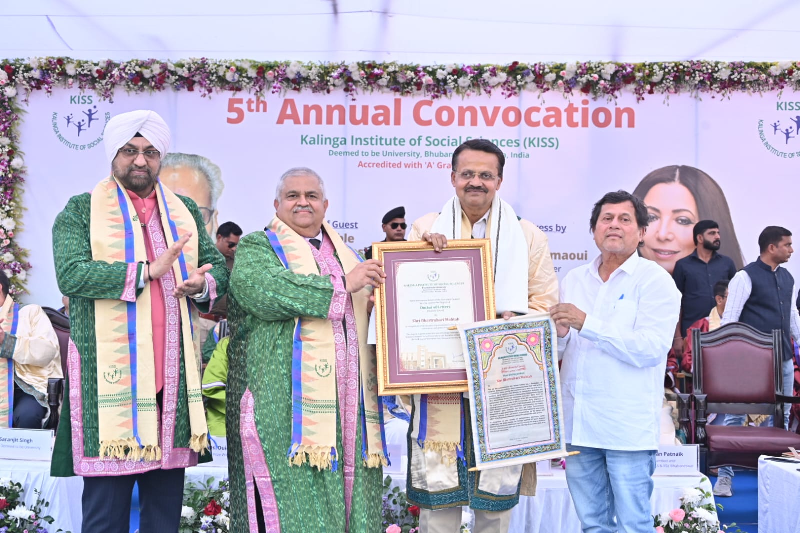 ଏହି ଅବସରରେ ଓଡ଼ିଶାର ତିନିଜଣ ବିଶିଷ୍ଟ ବ୍ୟକ୍ତି ସାଂସଦ ଭର୍ତ୍ତୃହରି ମହତାବ, ଦୈନିକ ସମ୍ବାଦର ପ୍ରତିଷ୍ଠାତା ସୌମ୍ୟ ରଞ୍ଜନ ପଟ୍ଟନାୟକ ଏବଂ ସିୱାଇଏସ୍ଡିର ସହପ୍ରତିଷ୍ଠାତା ଜଗଦାନନ୍ଦଙ୍କୁ ସମ୍ମାନସୂଚକ ଡକ୍ଟୋରେଟ ଡିଗ୍ରୀ ପ୍ରଦାନ କରାଯାଇଥିଲା। ସମ୍ମାନ ଗ୍ରହଣ କରି ଶ୍ରୀ ମହତାବ କହିଲେ, ଏହି ସମ୍ମାନସୂଚକ ଡିଗ୍ରୀ ମୋର ଶିକ୍ଷାଗତ ଯୋଗ୍ୟତା ନିମନ୍ତେ ନୁହେଁ, ସାଧାରଣ ଜୀବନରେ ଦୀର୍ଘ ୩୦ବର୍ଷର ମୋର କାର୍ଯ୍ୟର ସ୍ୱୀକୃତି। କିସ୍ର ଛାତ୍ରଛାତ୍ରୀମାନେ ଯେଉଁ ଶୃଙ୍ଖଳା ଓ ସଞ୍ଜମ ପ୍ରଦର୍ଶନ କରୁଛନ୍ତି ତାହା ଓଡ଼ିଶାର ଅନ୍ତର୍ନିହିତ ଶକ୍ତିକୁ ହିଁ ପ୍ରଦର୍ଶିତ କରୁଛି ବୋଲି ସେ କହିଥିଲେ। ସମ୍ମାନ ଗ୍ରହଣ ଶ୍ରୀ ପଟ୍ଟନାୟକ କହିଲେ, ଏପରି ସମାବର୍ତ୍ତନ ସଭା ପ୍ରଥମ ଥର ପାଇଁ ମୁଁ ମୋ ଜୀବନରେ ଦେଖୁଛି । ଏହି ସମ୍ମାନ ମୋତେ ଆଗକୁ ଆହୁରି କାର୍ଯ୍ୟ କରିବା ପାଇଁ ଅଧିକ ଶକ୍ତି ଯୋଗାଇବ। ଛାତ୍ରଛାତ୍ରୀଙ୍କୁ ପରାମର୍ଶ ଦେଇ ସେ କହିଲେ ଜୀବନରେ ସଫଳତା ପାଇବାକୁ ହେଲେ ପ୍ରଶ୍ନ ପଚାରି ଶିଖ ଏବଂ ମାଆ, ମାଟି ଓ ମାତୃଭାଷା ପ୍ରତି ସମ୍ମାନ ରଖିଥାଅ। ସମ୍ମାନ ଗ୍ରହଣ ଶ୍ରୀ ଜଗଦାନନ୍ଦ କହିଲେ, ନ୍ୟାୟ ଓ ସମ୍ମାନ କ୍ଷେତ୍ରରେ ଓଡ଼ିଶାର ଯାତ୍ରାକୁ ମୋର ଏହି ସମ୍ମାନ ପ୍ରତିଫଳିତ କରୁଛି। କିସ୍ ହେଉଛି ସମ୍ମାନ ଓ ସୁଯୋଗର ଉତ୍ସ ବୋଲି ସେ କହିଥିଲେ। ଏହି କାର୍ଯ୍ୟକ୍ରମରେ ସମ୍ମାନୀୟ ଅତିଥି ଭାବେ ୟୁଏଇସ୍ଥିତ କେଇଏଫ୍ ର ପ୍ରତିଷ୍ଠାତା ତଥା ଅଧ୍ୟକ୍ଷ ଫଇଜଲ ଇଦାଭାଲାଥ କୋଟି କୋଟିକୋଲୋନ, ଇଂଲଣ୍ଡସ୍ଥିତ ମାଲହୋତ୍ରା ଗ୍ରୁପ୍ ପିଏଲ୍ସିର ଅଧ୍ୟକ୍ଷ ଜେ ଏମ୍ ମିନୁ ମାଲହୋତ୍ରା ପ୍ରମୁଖ ଯୋଗଦେଇଥିଲେ।