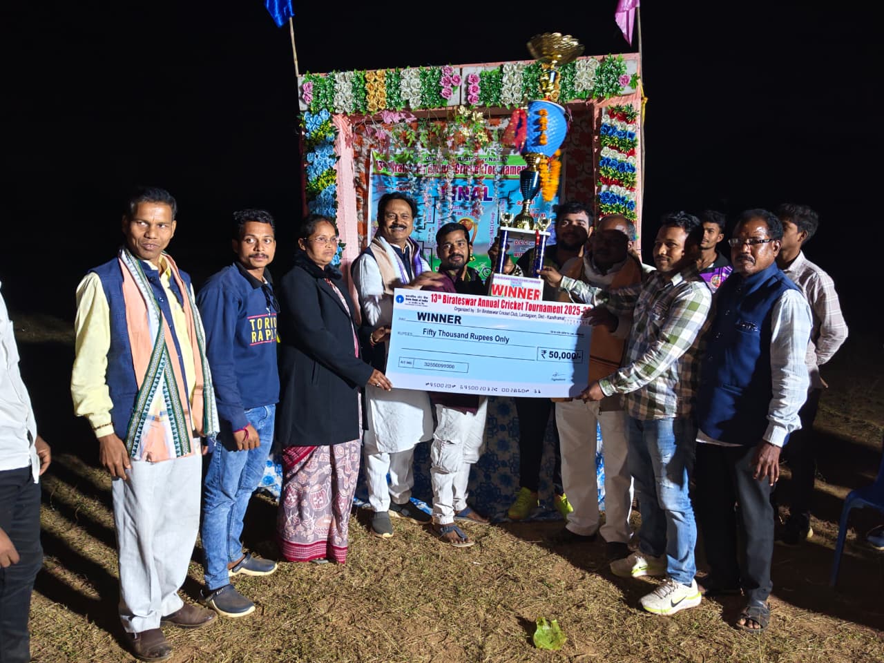 ବାଲିଗୁଡା, ୩୦/୧୨:(ସଞ୍ଜୟ କୁମାର ପାଣିଗ୍ରାହୀ): କନ୍ଧମାଳ ଜିଲ୍ଲା ବାଲିଗୁଡ଼ା ବ୍ଳକ ଲଣ୍ଡାଗାଁରେ ୫ ଦିନ ଧରି ଚାଲିଥିବା ୧୩ ତମ ବିରାଟେଶ୍ଵର କ୍ରିକେଟ ଟୁର୍ଣ୍ଣାମେଣ୍ଟ ଉଦଯାପିତ ହୋଇଯାଇଛି। କର୍ଣ୍ଣିବେଡ଼ା ଓ ମନମୁଣ୍ଡା ଦଳ ମଧ୍ୟରେ ଅନୁଷ୍ଠିତ ଫାଇନାଲ ମ୍ୟାଚରେ ମନମୁଣ୍ଡା ଦଳ କର୍ଣ୍ଣିବେଡ଼ାକୁ ୧୧୪ ରନରେ ପରାସ୍ତ କରି ଚଳିତବର୍ଷର ଚମ୍ପିଆନ ଆଖ୍ୟା ଅର୍ଜନ କରିଛି। ଫାଇନାଲ ମ୍ୟାଚରେ ମୁଖ୍ୟ ଅତିଥି ଭାବେ କନ୍ଧମାଳ ଜିଲ୍ଲା ବିଜେପି ସଭାପତି ପଣ୍ଡିତ କୁମାର ବିଶିମାଝୀ, ସମ୍ମାନୀତ ଅତିଥି ଭାବେ ସାଂସଦ ପ୍ରତିନିଧି ରଞ୍ଜିତ କୁମାର ସାହୁ, ଜିଲ୍ଲା ବିଜେପି ସଂପାଦକ ଦେବେନ୍ଦ୍ର କୁଦେଇ, ପୂର୍ବତନ ଜିଲ୍ଲା ବିଜେପି ସଭାପତି ଜଗନ୍ନାଥ ସାହୁ, ବୌଦ୍ଧ ଜିଲ୍ଲା ଘଣ୍ଟାପଡ଼ା ଜୋନର ଜିଲ୍ଲା ପରିଷଦ ସଦସ୍ୟା ଶ୍ରୀମତୀ ସୁମିତ୍ରା ସାହୁ, ବୌଦ୍ଧ ଜିଲ୍ଲା ଶିକ୍ଷକ ନେତା ନିଳାଚଳ ଭୋଇ, ନଗର ସାଂସଦ ପ୍ରତିନିଧି ଆଦିକନ୍ଦ ପଟ୍ଟନାୟକ, ସ୍ଥାନୀୟ ସରପଞ୍ଚ ଶ୍ରୀମତୀ ତୁଳସୀ ଝାଙ୍କର, ସମିତି ସଭ୍ୟ ହେମ ସାଗର ମାଝୀ, ଖମନମୁଣ୍ଡା ସରପଞ୍ଚ ଶ୍ରୀମତୀ ଅଳକା ପ୍ରଧାନ ପ୍ରମୁଖ ଉପସ୍ଥିତ ରହି ଖେଳାଳୀଙ୍କୁ ଉତ୍ସାହିତ କରିଥିଲେ। ପୁରସ୍କାର ବିତରଣ ସଭାରେ ସମସ୍ତ ଅତିଥି ବିଜେତା ଦଳକୁ ଟ୍ରଫି ସହ ୫୦ ହଜାର ପୁରସ୍କାର ରାଶି, ଉପ ବିଜେତାଙ୍କୁ ଟ୍ରଫି ସହ ୩୦ ହଜାର ପୁରସ୍କାର ରାଶି ପ୍ରଦାନ କରିଥିଲେ ଏବଂ ମ୍ୟାନ ଅଫ ଦି ସିରିଜ ଟିଟିଲାଗଡ ଦଳର ଲିଲୁ ବେହେରା ଓ ମ୍ୟାନ ଅଫ୍ ଦି ମ୍ୟାଚ୍ ବିଜେତା ମନମୁଣ୍ଡା ଦଳର ବିଷ୍ଣୁ ନାୟକଙ୍କୁ ଟ୍ରଫି ପ୍ରଦାନ କରାଯାଇଥିଲା। ଏହି ୫ଦିନିଆ ଖେଳକୁ ରବିନ୍ଦ୍ର କୁଦେଇ, ବୈକୁଣ୍ଠ ନାୟକ, ମହେନ୍ଦ୍ର ବାଘ ଓ ସଞ୍ଜୁ ରଣା ପରିଚାଳନା କରିଥିବା ବେଳେ ନକୁଳ ବାଘ, ପ୍ରଶାନ୍ତ ବେହେରା , ସଞ୍ଜିବ କୁମାର କୁଦେଇ ଓ ରବିନ୍ଦ୍ର କୁଦେଇଙ୍କ ସମେତ ସମସ୍ତ କମିଟୀ ସଦସ୍ୟ ଉପସ୍ଥିତ ରହି ପରିଚାଳନା ରେ ସହଯୋଗ କରିଥିଲେ।