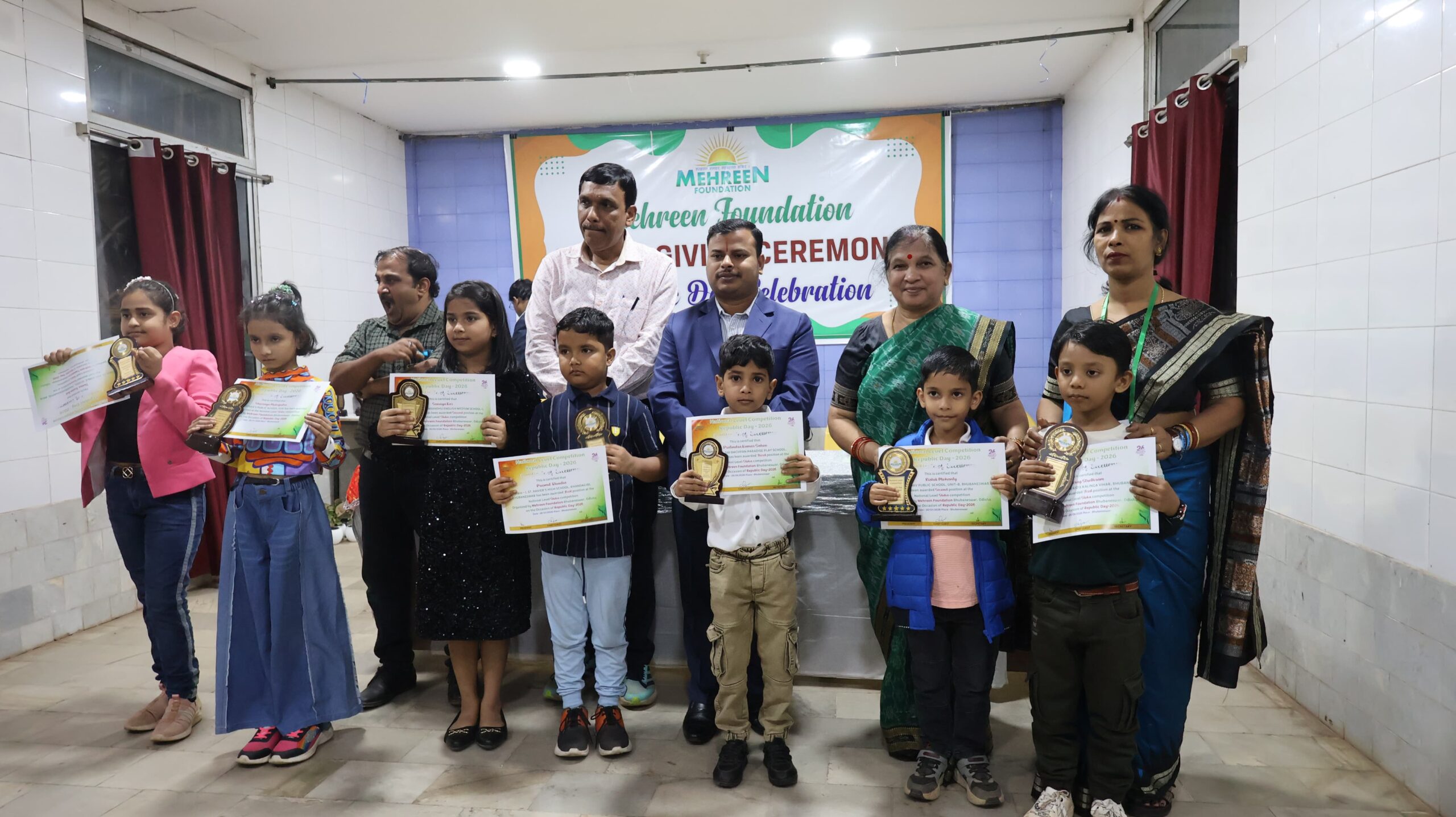ଭୁବନେଶ୍ୱର,୦୪/୦୧(ପାଇକପୁଅ)ସାମାଜିକ କଲ୍ୟାଣ ଓ ଜନସଚେତନତା କ୍ଷେତ୍ରରେ କାର୍ଯ୍ୟରତ ମେହରିନ୍ ଫାଉଣ୍ଡେସନ୍ ପକ୍ଷରୁ ଗଣତନ୍ତ୍ର ଦିବସ–୨୦୨୬ ଉପଲକ୍ଷେ ଆୟୋଜିତ ପୁରସ୍କାର ବିତରଣ ସମାରୋହ ବୁଦ୍ଧ ମନ୍ଦିର,ୟୁନିଟ୍ – ୩,ଖାରବେଳ ନଗର, ଭୁବନେଶ୍ୱରରେ ସଫଳତାର ସହିତ ଅନୁଷ୍ଠିତ ହୋଇଯାଇଛି।
