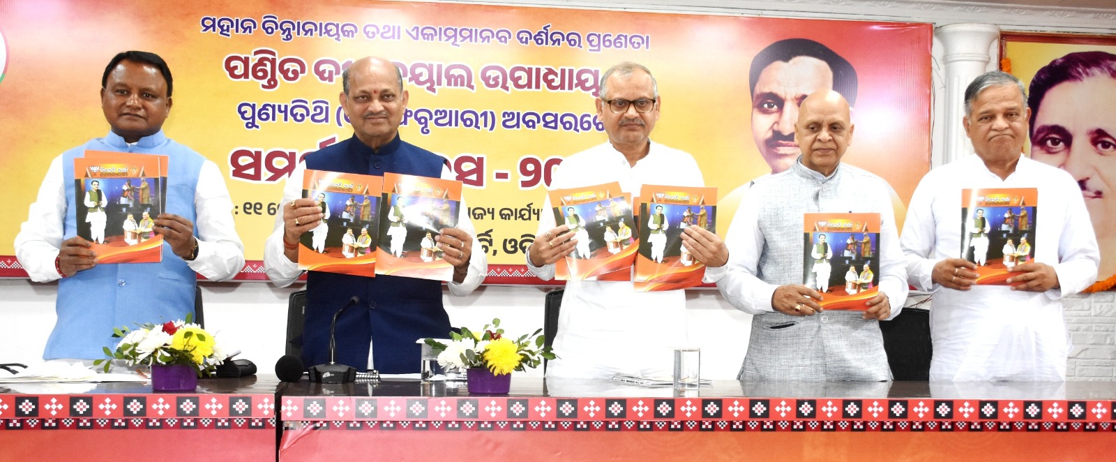 ଆୟୋଜିତ ଏହି କାର୍ଯ୍ୟକ୍ରମରେ ରାଷ୍ଟ୍ରୀୟ କାର୍ଯ୍ୟକାରିଣୀ ସଦସ୍ୟ ତଥା ପୂର୍ବତନ ରାଜ୍ୟ ସଭାପତି ଶ୍ରୀ ସମୀର ମହାନ୍ତି, ପୂର୍ବତନ ମନ୍ତ୍ରୀ ଶ୍ରୀ ଅରବିନ୍ଦ ଢାଲି, ଟିଟଲାଗଡ ବିଧାୟକ ଶ୍ରୀ ନବୀନ କୁମାର ଜୈନ୍, ରାଜ୍ୟ ଉପସଭାପତି ଡ. ଯତୀନ ମହାନ୍ତି, ଶ୍ରୀ ବିଷ୍ଣୁ ଦାସ, ରାଜ୍ୟ ସାଧାରଣ ସଂପାଦକ ଶ୍ରୀ ଶାରଦା ପ୍ରସାଦ ଶତପଥୀ, ଶ୍ରୀମତି ପୂର୍ଣ୍ଣିମା ପ୍ରିୟଦର୍ଶନୀ ନାୟକ, ରାଜ୍ୟ ସଂପାଦିକା ଶ୍ରୀମତି ଡ. ପ୍ରିତୀପ୍ରତିଭା ଭୋଳ, ଶ୍ରୀମତି ପିଙ୍କି ପ୍ରଧାନ, ଶ୍ରୀମତି ସ୍ମିତା ପ୍ରଧାନ, ବିଜେପି ବାର୍ତା ସଂପାଦକ ଶ୍ରୀ ପୂର୍ଣ୍ଣଚନ୍ଦ୍ର ମଲ୍ଲିକ, ବରିଷ୍ଠ ନେତା ଶ୍ରୀ ଭୁବନାନନ୍ଦ ତ୍ରିପାଠୀ, ଭୁବନେଶ୍ୱର ଜିଲ୍ଲା ସଭାପତି ଶ୍ରୀ ନିରଞ୍ଜନ ମିଶ୍ରଙ୍କ ସମେତ ଅନ୍ୟ ନେତୃବୃନ୍ଦ ଓ କାର୍ଯ୍ୟକର୍ତା ପ୍ରମୁଖ ଉପସ୍ଥିତ ରହି ଶ୍ରଦ୍ଧାଞ୍ଜଳୀ ଜ୍ଞାପନ କରିଛନ୍ତି । ସେହିପରି ଆଜି ରାଜ୍ୟବ୍ୟାପୀ ସମସ୍ତ ବୁଥ୍ ଏବଂ ଜିଲ୍ଲା ସ୍ତରରେ ବିଭିନ୍ନ କାର୍ଯ୍ୟକ୍ରମ କରାଯାଇ ପଣ୍ଡିତ ଦୀନଦୟାଲଜୀଙ୍କୁ ଶ୍ରଦ୍ଧାଞ୍ଜଳି ଅର୍ପଣ କରାଯାଇଛି ।