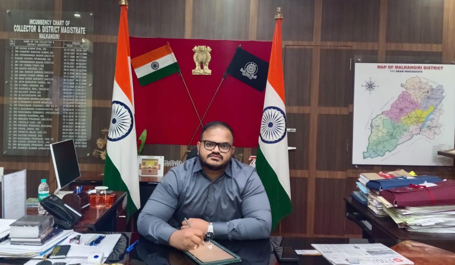 ମାଲକାନଗିରି,୧୩/୦୩ (ସୁଧାଂଶୁ ଶେଖର ମହାନ୍ତି) ମାଲକାନଗିରି ଜିଲ୍ଲାର ନୂତନ ଜିଲ୍ଲାପାଳ ଭାବରେ ଶୁକ୍ରବାର ପ୍ରଥମେଶ ଅରବିନ୍ଦ ରାଜସିର୍କେ କାର୍ଯ୍ୟରେ ଯୋଗ ଦେଇଛନ୍ତି। ଏହା ପୂର୍ବରୁ ସେ ବ୍ରହ୍ମପୁର ମହାନଗର ନିଗମର କମିଶନର ଥିଲେ। ମାଲକାନଗିରି ଜିଲ୍ଲା ରେ ଶିକ୍ଷା, ସ୍ଵାସ୍ଥ୍ୟ ସହ ଭିତ୍ତିଭୂମି ନିର୍ମାଣ କାର୍ଯ୍ୟକୁ ଅଗ୍ରାଧିକାର ଭିତ୍ତିରେ ଆଗେଇ ନେବାକୁ ନିରନ୍ତର ପ୍ରୟାସ କରିବେ ବୋଲି ଜିଲ୍ଲାପାଳ ନିଜ ପ୍ରତିକ୍ରିୟାରେ ପ୍ରକାଶ କରିଛନ୍ତି। ମାଲକାନଗିରି ଜିଲ୍ଲାର ଅପରୂପ ସୌନ୍ଦର୍ଯ୍ୟର ବିକାଶ କରି ପର୍ଯ୍ୟଟନ ମାନଚିତ୍ରରେ ଏକ ସ୍ୱତନ୍ତ୍ର ସ୍ଥାନ ଭାବେ ଗଢି ତୋଳିବା ପାଇଁ ଉଦ୍ୟମ କରିବେ ବୋଲି ମଧ୍ଯ ଜିଲ୍ଲାପାଳ ପ୍ରକାଶ କରିଛନ୍ତି।ଗରିବ, ନିଷ୍ପେସିତ ଲୋକଙ୍କ ନିକଟରେ ସରକାରୀ ଯୋଜନା ପହଞ୍ଚାଇବା ଓ ସେମାନଙ୍କର ସମସ୍ୟା ସମାଧାନ ଦିଗରେ ପ୍ରାଥମିକତା ଦେବେ ବୋଲି କହିଛନ୍ତି। ସେହିପରି ଜିଲ୍ଲାର ସାମଗ୍ରିକ ବିକାଶ ଜନସାଧାରଣଙ୍କ ସହଯୋଗରେ ଆଗକୁ ନେବା ପାଇଁ ପ୍ରୟାସ ଜାରି ରଖିବେ ବୋଲି ପ୍ରକାଶ କରିଛନ୍ତି। ଜିଲ୍ଲାପାଳ ଶ୍ରୀ ରାଜସିର୍କେଙ୍କ ଯୋଗଦାନ ପରେ ଅତିରିକ୍ତ ଜିଲ୍ଲାପାଳ ପ୍ରଶାସନ ସୋମନାଥ ପ୍ରଧାନ, ଅତିରିକ୍ତ ଜିଲ୍ଲାପାଳ ରାଜସ୍ବ ବେଦବର ପ୍ରଧାନ, ମୁଖ୍ୟ ଉନ୍ନୟନ ଅଧିକାରୀ ତଥା ନିର୍ବାହୀ ଅଧିକାରୀ ଦାଶରଥି ସରାବୁ, ଜିଲ୍ଲାସ୍ତରୀୟ ଅଧିକାରୀ, କର୍ମଚାରୀ, ଗଣମାଧ୍ଯମର ପ୍ରତିନିଧିମାନେ ସୌଜନ୍ୟମୂଳକ ସାକ୍ଷାତ କରି ତାଙ୍କୁ ସ୍ବାଗତ ଓ ଅଭିନନ୍ଦନ ଜଣାଇଥିଲେ।
