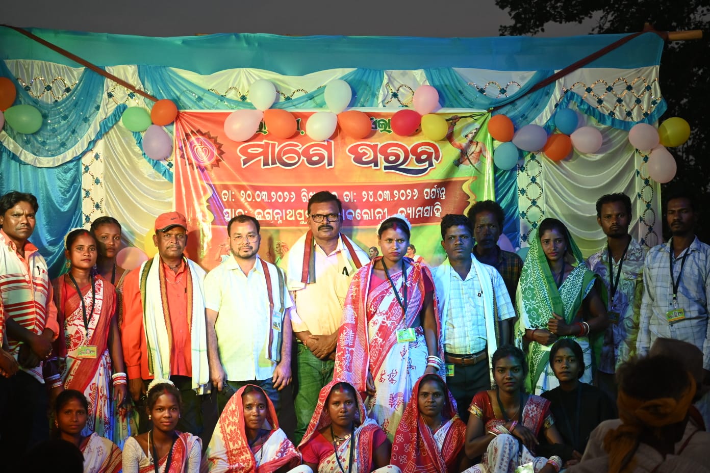 ଚମ୍ପୁଆ, ୨୫/୦୩(ପାଇକପୁଅ)ଚମ୍ପୁଆ ଉପଖଣ୍ଡ ଝୁମ୍ପୁରା ବ୍ଲକ୍ ନାରଦପୁର ପଞ୍ଚାୟତ ଅନ୍ତର୍ଗତ ଜଗନ୍ନାଥପୁର ଗ୍ରାମର ଡ୍ୟାମ୍ ସାହିରେ ହୋ ସମାଜ ମୁଣ୍ଡା କମିଟି ଆନୁକୂଲ୍ୟରେ ଚାରିଦିନ ଧରି ହୋ ମୁଣ୍ଡା ସମାଜର ପାରମ୍ପରିକ ମାଗେ ପରବ ଅନୁଷ୍ଠିତ ହୋଇଯାଇଛି l ମାଗେ ପରବ ଉତ୍ସବ ସମାରୋହରେ ମୁଖ୍ୟ ଅତିଥି ଭାବେ ଚମ୍ପୁଆ ନିର୍ବାଚନ ମଣ୍ଡଳୀର ଯୋଡ଼ା ବ୍ଲକ୍ ସାଂସଦ ପ୍ରତିନିଧି ଅଗନୁ ଚରଣ ମହାନ୍ତ, ସମ୍ମାନିତ ଅତିଥି ଭାବେ ସମାଜସେବୀ ପ୍ରମୋଦ କୁମାର ମହାନ୍ତ ପ୍ରମୁଖ ଯୋଗ ଦେଇଥିଲେ । ଏହି ଅବସରରେ ମୁଖ୍ୟ ଅତିଥି ରାଜ୍ୟ ସରକାରଙ୍କ ବିଭିନ୍ନ ଯୋଜନା ଗୁଡ଼ିକ ବିଷୟରେ ବୁଝାଇ କହିଥିବା ବେଳେ ସମ୍ମାନିତ ଅତିଥି ଶିକ୍ଷା ସହିତ ଭାଇଚାରାର ହାତ ବଢ଼େଇ ସମସ୍ତେ ମିଳିମିଶି ରହିବାକୁ ପରାମର୍ଶ ଦେଇଥିଲେ । ପ୍ରଥମେ ଅତିଥି ମାନଙ୍କୁ କମିଟି ସଦସ୍ୟ ଓ ଗ୍ରାମବାସୀମାନେ ବନ୍ଦାପନା କରି ପାରମ୍ପରିକ ନାଚଗୀତ ତାଳେ ତାଳେ ମଞ୍ଚ ଉପରକୁ ବିରାଟ ଶୋଭାଯାତ୍ରାରେ ପାଛୋଟି ନେଇ ସମ୍ବର୍ଦ୍ଧିତ କରିଥିଲେ । ଗ୍ରାମ ଦେହୁରୀ ସମସ୍ତ ରୀତିନୀତି ଅନୁସାରେ ପୂଜା କର୍ମ ସମାପନ କରିଥିଲେ । ସେଠାରେ ଆଦିବାସୀ ସମ୍ପ୍ରଦାୟର ପୁରୁଷ, ମହିଳା ମାନେ ପୂର୍ବର ରାଗରୁଷାକୁ ଭୁଲି ଏକତ୍ରିତ ଭାବେ କାନ୍ଧକୁ କାନ୍ଧ ମିଳାଇ ହାତକୁ ହାତ ଧରାଧରି ହୋଇ ନାଚ ଗୀତରେ ମଜି ଯାଇଥିବାର ସୁନ୍ଦର ଦୃଶ୍ୟ ଦେଖିବାକୁ ମିଳିଥିଲା । ପର୍ବ ଦେଖିବାକୁ ଆଖ ପାଖ ଗ୍ରାମ ମାନଙ୍କରୁ ହଜାର ହଜାର ସଂଖ୍ୟାରେ ଲୋକଙ୍କ ସମାଗମ ହୋଇଥିବା ଦେଖିବାକୁ ମିଳିଥିଲା । କାର୍ଯ୍ୟକ୍ରମକୁ ହୋ ମୁଣ୍ଡା କମିଟିର ସଭାପତି ରାଜେନ୍ଦ୍ର କୁମାର ଜାମୁଦା, ଉପସଭାପତି ଡିବୁରୁ ମୁଣ୍ଡା, ସମ୍ପାଦକ ଗୋବିନ୍ଦ ମୁଣ୍ଡା, ସଦସ୍ୟ ରାମଚନ୍ଦ୍ର ମୁଣ୍ଡା, ତୁକା ଦାସ, ଖଗେଶ୍ବର ଦାସ, ରୋହିତ ମୁଣ୍ଡା, ମିଥୁନ ମୁଣ୍ଡା ଓ ଗୋବିନ୍ଦା ନାଏକଙ୍କ ଦ୍ୱାରା ପରିଚାଳିତ ହୋଇଥିବାର ଦେଖିବାକୁ ମିଳିଥିଲା ।