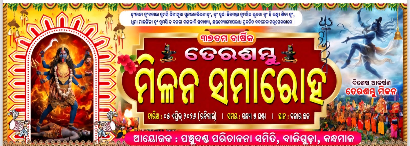ବାଲିଗୁଡା,୩୦/୦୩:(ସଞ୍ଜୟ କୁମାର ପାଣିଗ୍ରାହୀ)ଆଉ ଦିନକ ପରେ ଆସୁଛି, ୧୩ ଦିନିଆ ଦଣ୍ଡଯାତ୍ରା, ଏହି ପରିପ୍ରେକ୍ଷୀରେ ଚଳିତ ମାସ ୧ ତାରିଖ ଠାରୁ ୧୪ ତାରିଖ ପର୍ଯ୍ୟନ୍ତ ମା’କାଳୀଙ୍କ ଦଣ୍ଡଯାତ୍ରା ଅନୁଷ୍ଠିତ ହେଉଅଛି । ପ୍ରତିବର୍ଷ ଭଳି ଚଳିତ ବର୍ଷ ମଧ୍ୟ ବାଲିଗୁଡ଼ା ସହରରେ ସ୍ଥାନୀୟ ପଞ୍ଚୁଦଣ୍ଡ ପରିଚାଳନା ସମିତି ଆନୁକୂଲ୍ୟରେ ୩୭ ତମ ବାର୍ଷିକ ତେର ଶମ୍ଭୁ ମିଳନ ସମାରୋହ ଏପ୍ରିଲ ୫ ତାରିଖ ରବିବାର ଦିନ ଅନୁଷ୍ଠିତ ହେବ । ଏ ନେଇ ସମସ୍ତ କାର୍ଯ୍ୟ ଶେଷ ପର୍ଯ୍ୟାୟ ରେ ପହଞ୍ଚିସାରିଛି। ଏପ୍ରିଲ ୧ ତାରିଖ ଠାରୁ ୧୪ ତାରିଖ ପର୍ଯ୍ୟନ୍ତ ସହରରେ ଅଣ୍ଡା, ମାଛ, ମାଂସ, ଶୁଖୁଆ ପ୍ରଭୃତି ଆମିଷ ଦ୍ରବ୍ୟ ବିକ୍ରି ଓ ସେବନ ବନ୍ଦ କରି ଆମକୁ ସହଯୋଗ କରିବା ସହିତ ମା’ କାଳୀଙ୍କ ଆଶୀର୍ବାଦ ଲାଭ କରିବା ପାଇଁ ସମିତି ତରଫରୁ ଅନୁରୋଧ କରାଯାଇଛି । ତେର ଦଣ୍ଡ ମିଳନର କାର୍ଯ୍ୟସୂଚୀ ପ୍ରକାରେ ୫ ତାରିଖ ରବିବାର ସକାଳ ୮ଘଣ୍ଟା ସମୟରେ ମା’ ପାଟ୍ଟଖଣ୍ଡା ମନ୍ଦିରରେ ୧୩ ଦଣ୍ଡ ଥଳର ବରଣ କରାଯିବ। ଦିବା ଘ.୧୧.୩୦ମି.ସମୟରେ ମେଇନ୍ରୋଡ଼ ରେ ଧୂଳିଦଣ୍ଡ ଅନୁଷ୍ଠିତ ହେବ।ଅପରାହ୍ନ ଘ.୦୪.୩୦ ମି.ସମୟରେ ବନ୍ଧପାଖରେ ପାଣିଦଣ୍ଡ ର ଆୟୋଜନ କରାଯିବ। ସନ୍ଧ୍ୟା ୦୫ ଘଟିକା ସମୟରେ ଟାଉନର ବଜାର ଛକ ନିକଟରେ ଅଞ୍ଚଳର ସବୁଠାରୁ ଆକର୍ଷଣୀୟ ୧୩ ଦଣ୍ଡର ମହାମିଳନ ଖୁବ ଯାକ ଜକମକରେ ଆୟୋଜନ କରାଯିବ। ରାତ୍ର ୮ ଘଣ୍ଟ ଠାରୁ ୧୨ ଘଣ୍ଟ ପର୍ଯ୍ୟନ୍ତ ବିଭିନ୍ନ ପ୍ରକାର ସାଂସ୍କୃତିକ କାର୍ଯ୍ୟକ୍ରମ ସହ ରାତ୍ର ୧୧ ଘଣ୍ଟ ସମୟରେ ଝୁଣାଦଣ୍ଡ ର ଏକ ବିରାଟ ପଟୁଆର ହେବା ସହ ୬ ତାରିଖ ସକାଳ ୦୮ଘଟିକା ସମୟରେ ଯାତ୍ରା ସମାପ୍ତ ହେବ ଏଣୁ ଏହି କାର୍ଯ୍ୟକ୍ରମ ରେ ବହୁ ସଂଖ୍ୟା ରେ ଯୋଗ ଦେବାପାଇଁ ସମିତି ତରଫରୁ ଅନୁରୋଧ କରାଯାଇଛି।